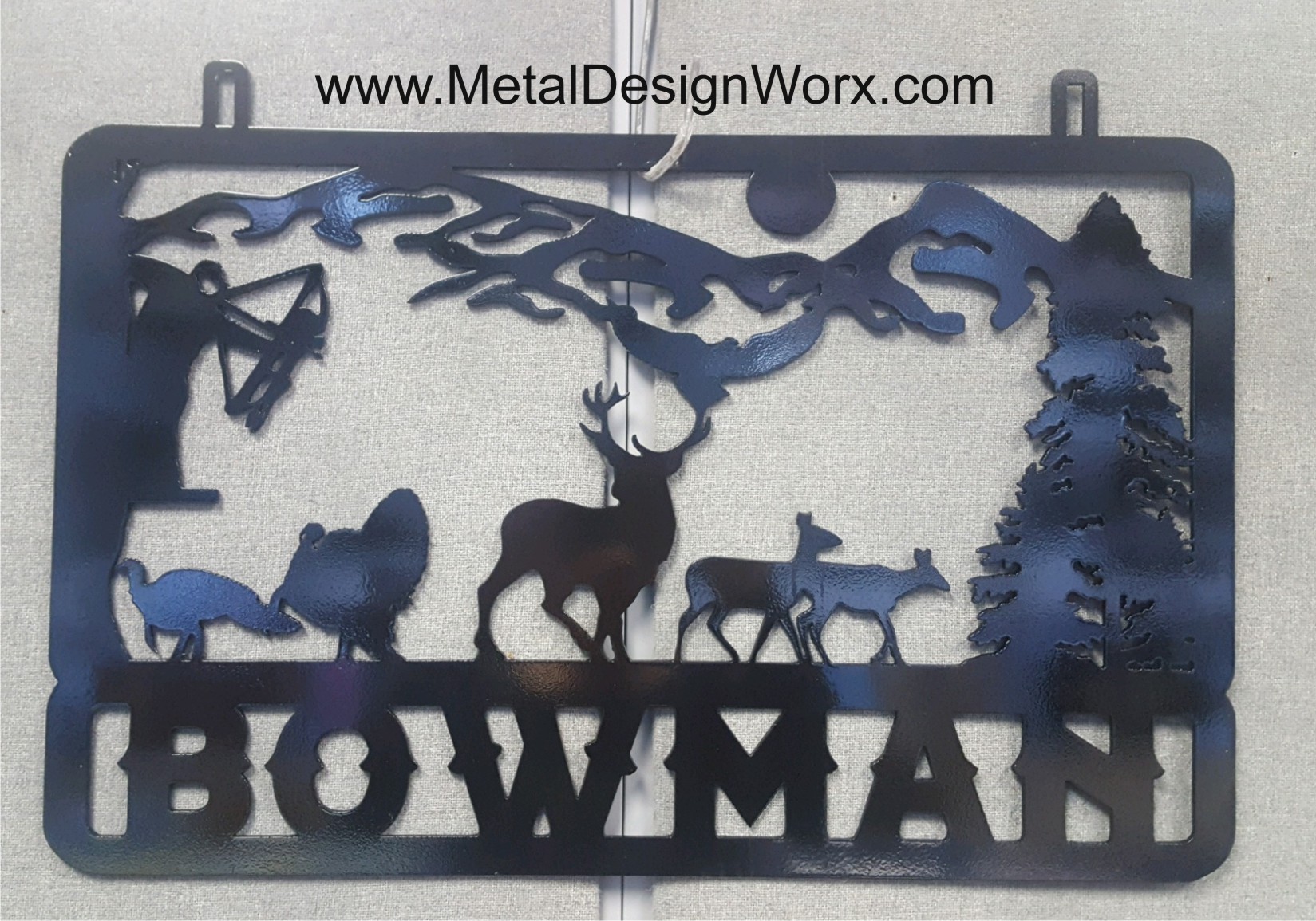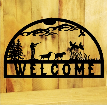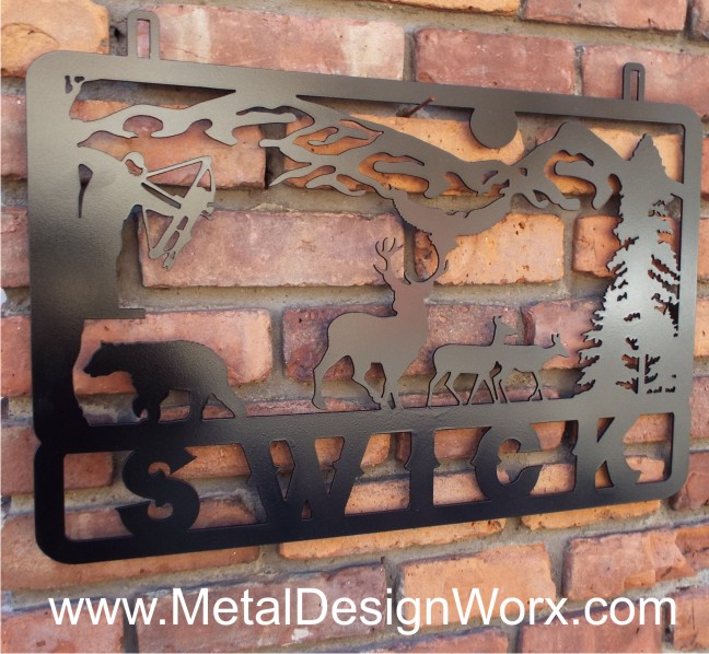 Metal Hunting Cabin Sign Bow Hunter Scene Sign
